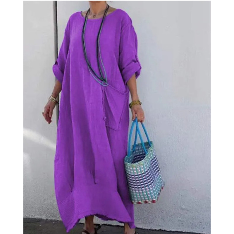 Women's Long Dress Maxi Dress Cotton Blend Casual Dress Fashion Modern Outdoor Vacation Holiday Regular Fit Plain Long Sleeve Crew Neck Blue White Yellow Pink Fall