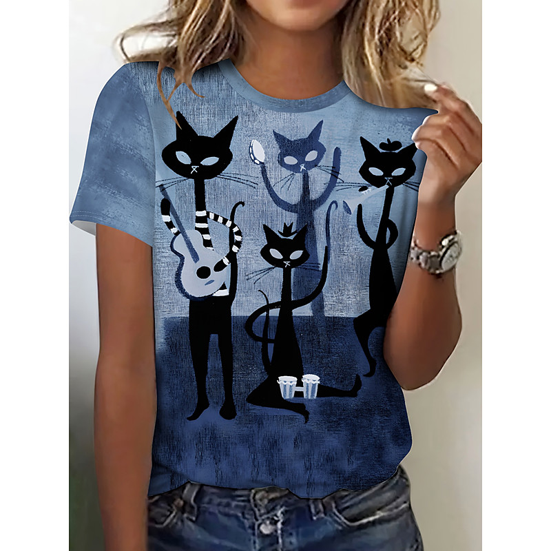 Women's T Shirt Graphic Animal Cat Vintage Stylish Classic Short Sleeve Crew Neck Round Neck Regular Tops Daily Weekend Print Dusty Blue Summer Spring Fall