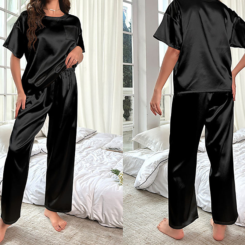 Women's Loungewear Pajama Set Fashion Casual Soft Pure Color Patchwork Pant Home Vacation Short Sleeve Crew Neck Blue Black Wine Purple Khaki Summer Spring Fall Regular Fit