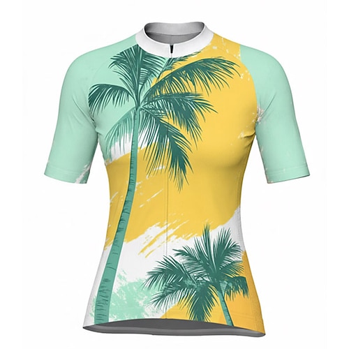 Per donna Maglia da Ciclismo Fiori tropicali Palma Manica Corta Bicicletta Maglia Top con 3 tasche posteriori Asciugatura Rapida Traspirante Gli sport Verde Abbigliamento