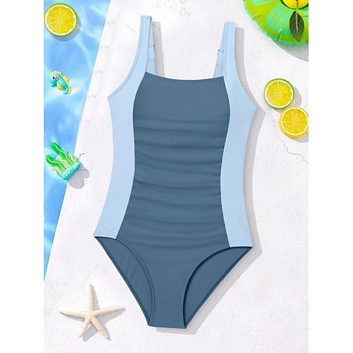 Bambini Ragazze Costume da bagno All'aperto Spiaggia Blocco di colori Vacanza Moda Patchwork Costumi da bagno Dai 4 anni in su Estate Blu Nero