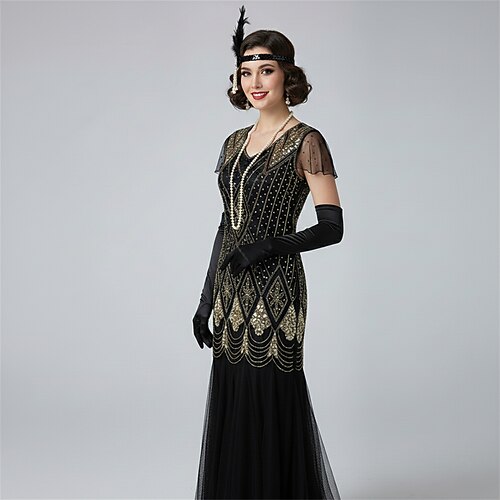 Anni Ruggenti Anni 1920 Abito da cocktail Lunghezza alla caviglia Vestito Abito da Ballo Abito per Festa di Natale Normale Maniche corte Il grande Gatsby Charleston Invitato al matrimonio Paillettes