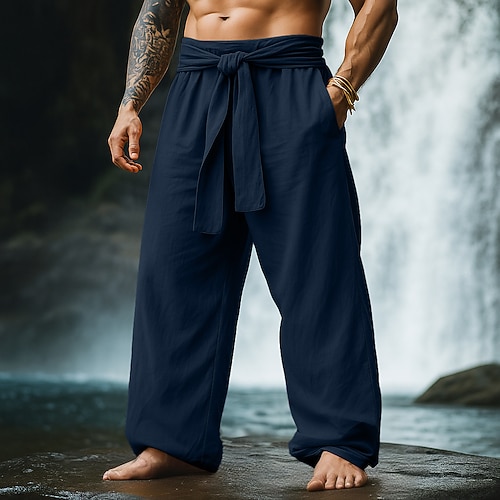 Per uomo Pantaloni di Lino Pantaloni Pantaloni Estivi Pantaloni Larghi Pantaloni da Spiaggia Elastico in vita Coulisse Gamba Dritta Semplice Comodità Traspirante Lunghezza intera Casuale Quotidiano