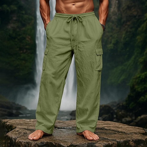 Per uomo Pantaloni di Lino Pantaloni Pantaloni Estivi Pantaloni Larghi Coulisse Elastico in vita Gamba Dritta Semplice Comodità Traspirante Lunghezza intera All'aperto Casuale Quotidiano Vacanza Moda