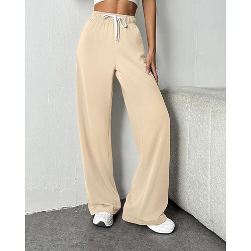 Per donna Gamba larga Chinos Vacanza Streetwear Casual Lunghezza intera Vita media Semplice Design con Coulisse Elastica Confortevole Micro-elastico All'aperto Vacanza Quotidiano Grigio scuro Bianco