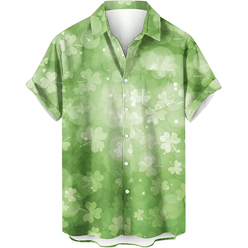 St.Patrick's Day Men's Shirt Summer Hawaiian Shirt Graphic Prints Saint Patrick Day St. Patrick's Day Clover Turndown Light Yellow Green / Black Olive Green Black Army Green Army GreenArmy Green