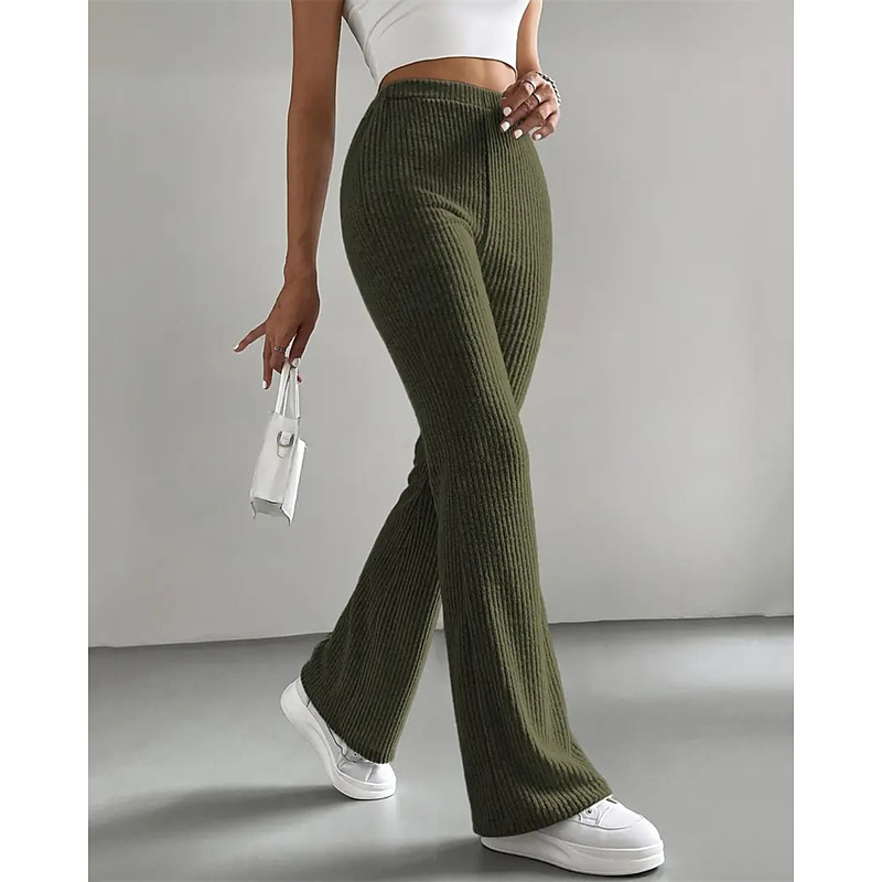 Women's Bell Bottom Slacks Pants Trousers Streetwear Casual Full Length Natural Plain Elastic Drawstring Design Outdoor Comfortable Vacation Going out Light Sky Blue Light Green Pink Light Grey Summer