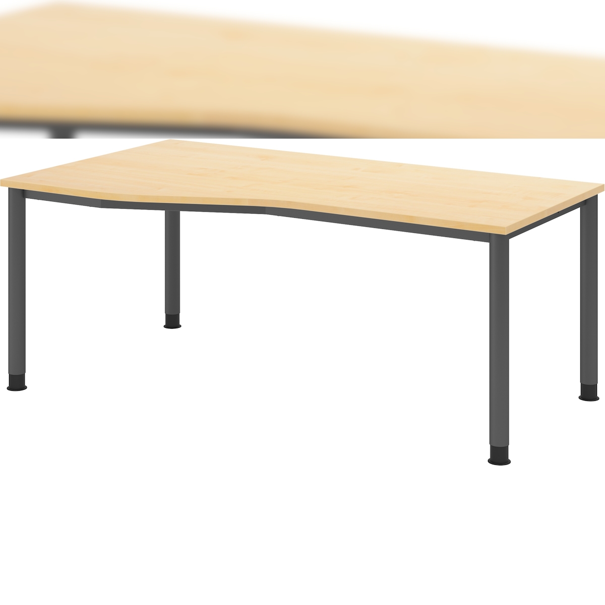 bümö höhenverstellbarer Schreibtisch H-Serie 180x100 cm in Ahorn, Gestell in Graphit - PC Tisch für's Büro manuell höhenverstellbar, Computertisch