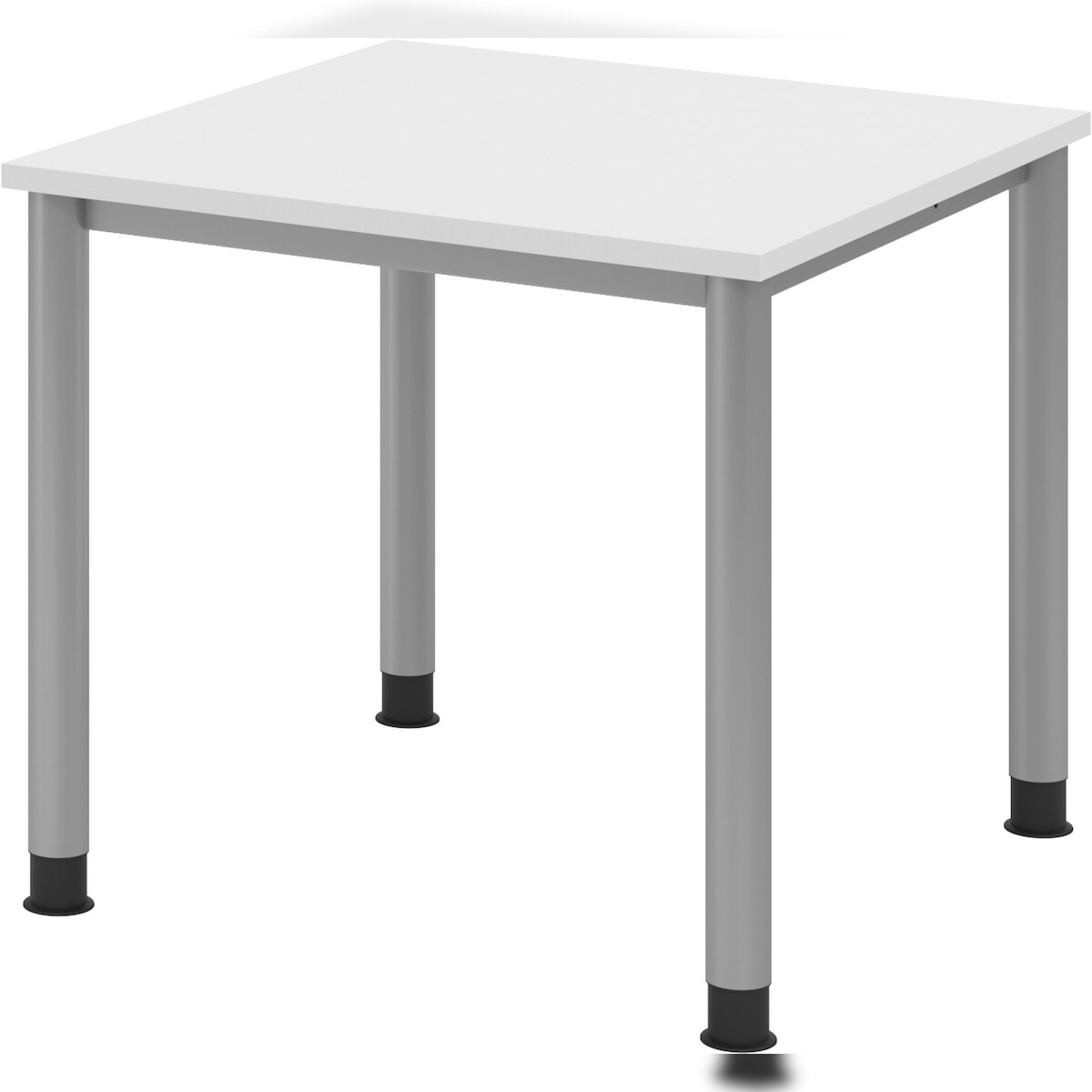 bümö höhenverstellbarer Schreibtisch H-Serie 80x80 cm in weiß, Gestell in Silber - PC Tisch klein für's Büro manuell höhenverstellbar, Computertisch