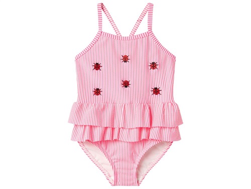 Name It Badedragt Knockout Pink Stribet Med Mariehøns - Str. 18-24m 86/92cm