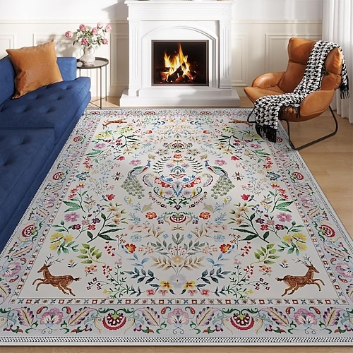 tappeto lavabile in lavatrice, tappeto vintage per soggiorno, tappeto lavabile per tavolino da caffè con retro antiscivolo, pieghevole e facile da pulire, tappetino morbido e resistente per la casa