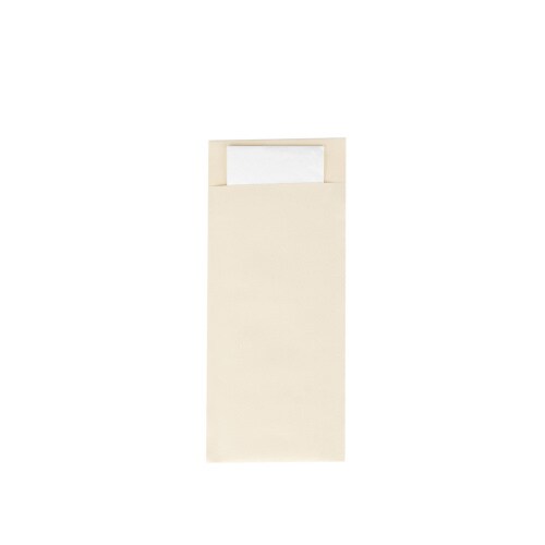 Mank Bestecktasche in Creme 85 x 200 mm, mit 2-lagiger Tissue-Serviette in Weiß - 100 Stück