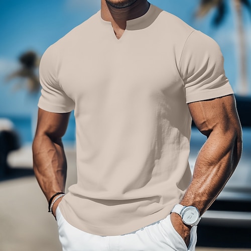 Per uomo Maglietta Mezze maniche Scollo a V Primavera Autunno Semplice Moda Designer Essenziale Allacciato Vacanza Streetwear Uscire Aalbicocca Nero Bianco Maglietta Top per Uomo