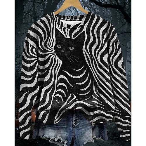 Per donna Pullover Felpe Gatto Moda Streetwear Classico Manica Lunga Girocollo Top Regolari Abbigliamento Quotidiano Casuale Stampato Bianco Viola Primavera Autunno