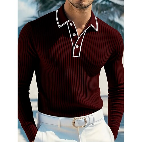 Herren Rippenstrick-Top Textur Geschäft Lässig Gerippter Polokragen Langarm Mode Basic Einfarbig Stricken Herbst Winter Ganzjahres Schmale Passform Hellblau Schwarz Weiß Grau Wein Marineblau