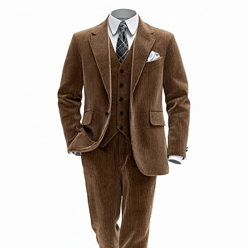 Herren Party-Abendmode Smokings Gekerbtes Revers Braun Hell Gray Mode Formell Einfarbig Standard Passform 3-teilig Einreiher - 1 Knopf