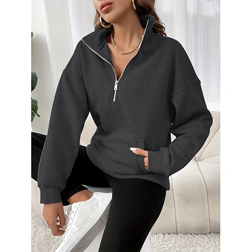 Per donna Felpa Pullover Semplice Casual Manica Lunga Dolcevita Top Regolari Streetwear Abbigliamento Quotidiano Patchwork Cerniera Nero Fucsia Grigio scuro Beige Grigio Autunno Inverno