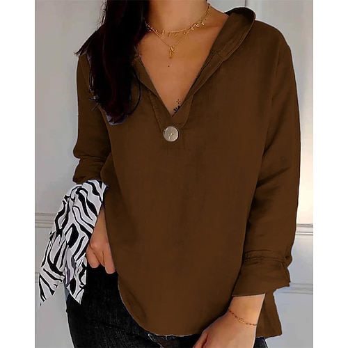 Per donna Camicia Semplice Elegante Moderno Manica Lunga Con Cappuccio Top Regolari Quotidiano Uscire Bottoni Nero Bianco Blu Reale Azzurro cielo Marrone Primavera Autunno