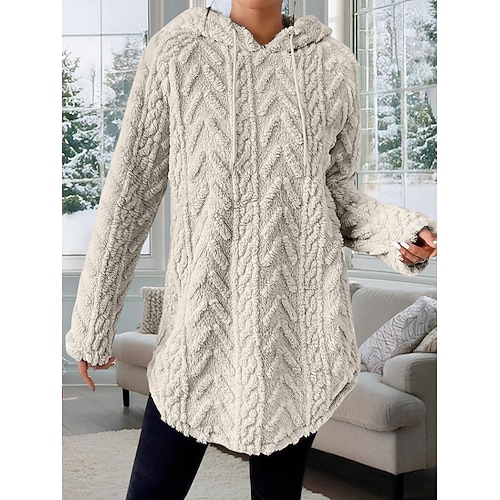 Per donna Blusa Tinta unica Elegante Casual Manica Lunga Con Cappuccio Top lunghi Quotidiano Nero Rosso Viola Grigio scuro Albicocca Primavera Autunno Inverno