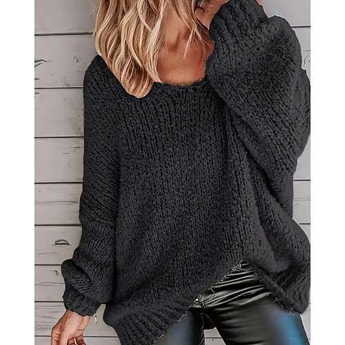 Per donna Felpa Maglione Streetwear Casual Tinta unica Girocollo Lavorato a maglia Manica Lunga Top Regolari Maglia Quotidiano Ferie Uscire Blu Nero Autunno Inverno