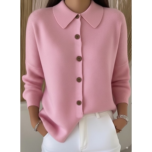 Per donna Cardigan Quotidiano Colletto a Camicia Bottoni Manica Lunga Top Regolari Maglia Lavoro Ferie Rosso bordeaux Nero Primavera Autunno