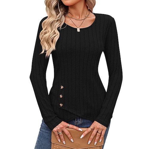Per donna Blusa Semplice Elegante Sexy Casual Manica Lunga Girocollo Top Regolari Ferie Uscire Bottoni Nero Albicocca Rosa Estate Primavera Autunno