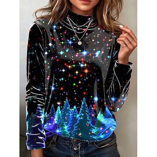 Per donna Tunica Maglietta Grafico Fiocco di neve Elegante Vintage Moda Manica Lunga Dolcevita Top Regolari Quotidiano Uscire Weekend Stampato Blu Nero Vino Autunno