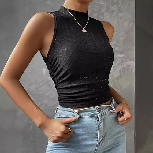 Per donna Top estivi Blusa Top traforato Top Eleganti Semplice Elegante Vintage Quotidiano Senza Maniche Collo a U Top Regolari Quotidiano Lavoro Ferie Arricciato Patchwork Traforato Rosa cipria Nero