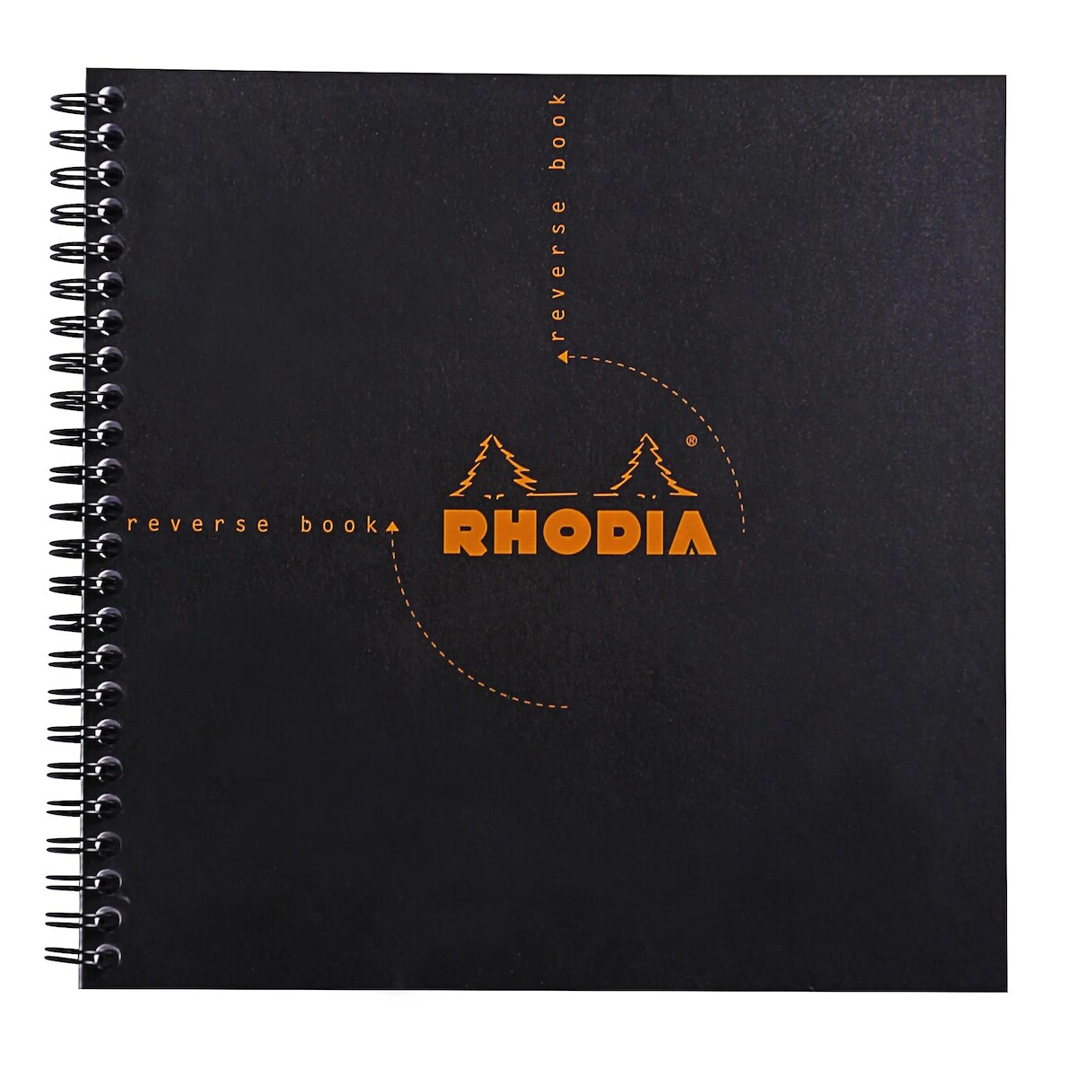 Rhodia 5x Reverse Book Rhodia 21x21cm, mit Doppelspirale, 80 Blatt kariert 80g, abtrennbar - Schwarz 193609C