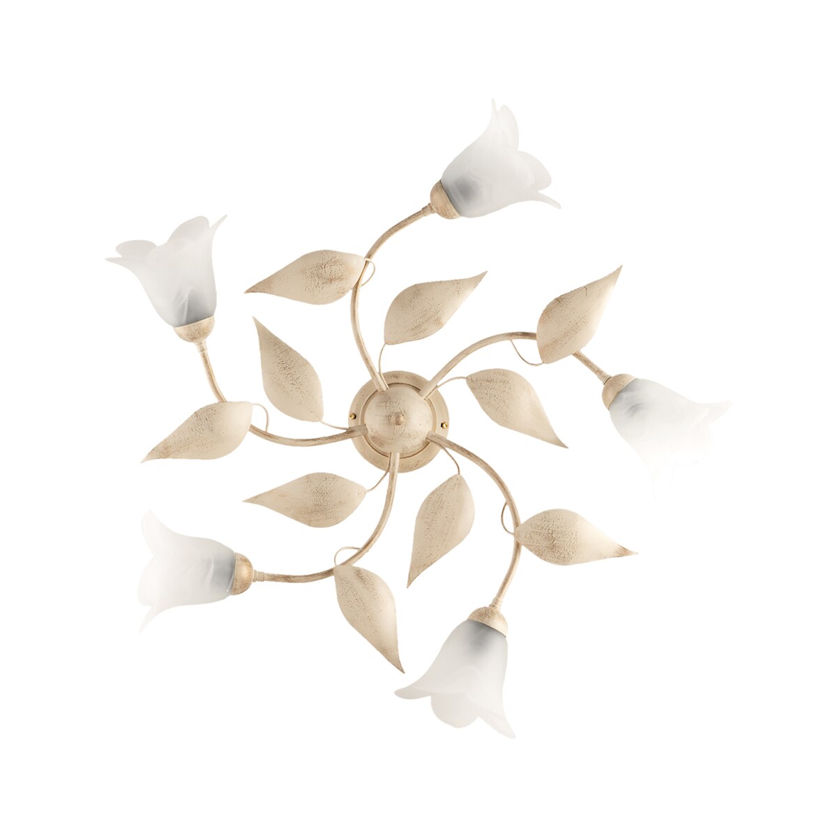 Belight - Olga - Deckenleuchte elfenbeinfarben, Antikgold & Alabasterglas, Ø70, H20, 5-flammig - BL155-PL5-AV