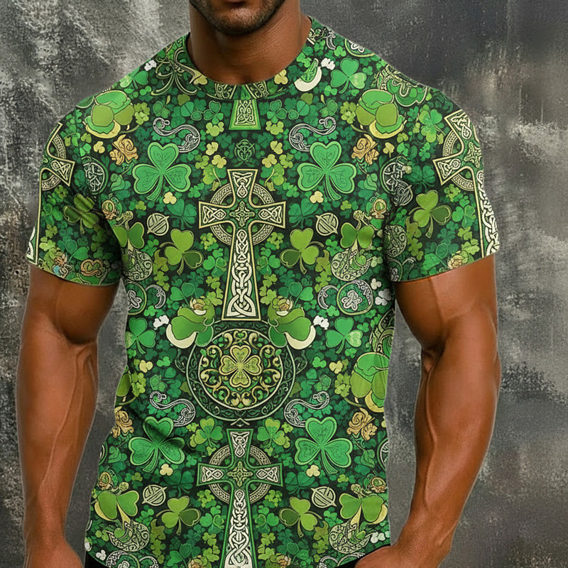 St. Patrick's Day Short Sleeve T-Shirt for Men Ireland Leprechaun Lucky Irish Shamrock Graphic Tee 3D Print Crew Neck St. Paddy's Day Top