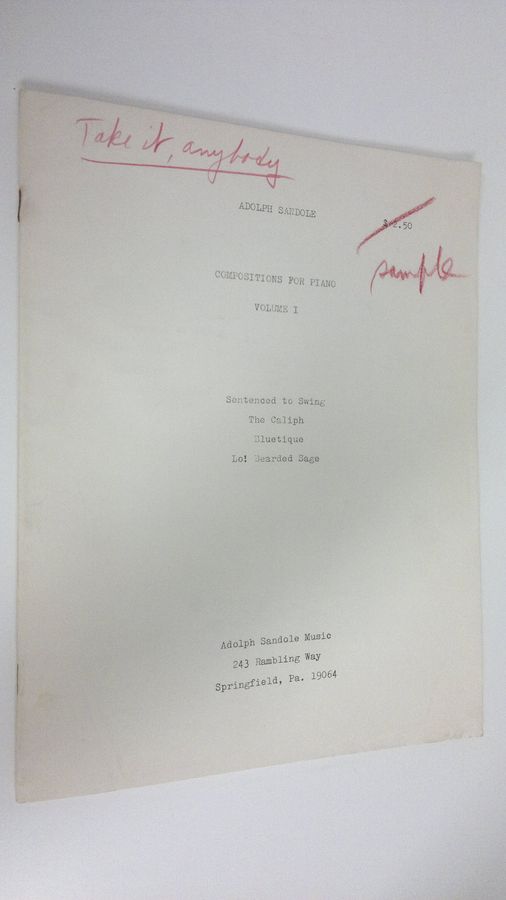Adolph Sandole : Compositions for piano volume 1 : Sentenced to Swing - The Caliph - Bluetique - Lo! Bearded Sage