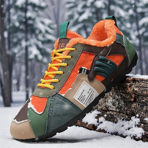 Per uomo Sneakers Foderato in pile Scarpe da corsa Camminata Casual Pelle PU Confortevole Antiscivolo Traspirante Stivaletti Allacciatura Rosso scuro Arancione Verde Estate Primavera Autunno