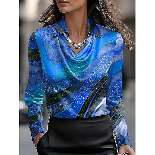 Per donna Camicia Ombre Grafico Elegante Casual Manica Lunga Scollo a Cascata Top Regolari Lavoro Abbigliamento da sera Quotidiano Arricciato Drappeggiato Blu Fucsia Verde Estate Autunno