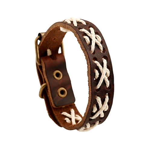 Herrenarmband aus geflochtenem Leder im Bohème-Stil im Vintage-Stil mit Schnallenverschluss und geflochtener Kordelverzierung – verstellbare Westernmanschette für die Freizeit und als Geschenk