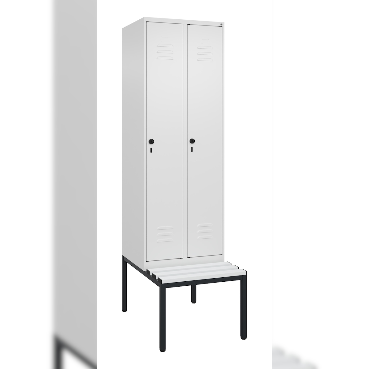 C+P Spind Classic PLUS, Kunststoff untergebaute Sitzbank, 2 Abteile, HxBxT 212x60x82cm, Sicherheitsdrehriegel, Verkehrsweiß von PROREGAL