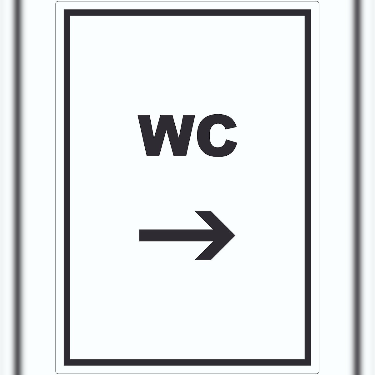 HB-Druck WC Aufkleber mit Text und Richtungspfeil rechts Toilette Klo hochkant A9 (37x52mm)