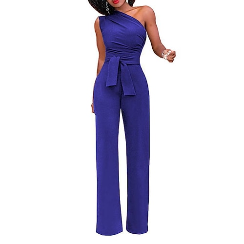 Per donna Tuta Schiena scoperta Lacci Tinta unica Monospalla Elegante Feste Strada Standard Senza maniche Verde Blu Bianco S M L Primavera