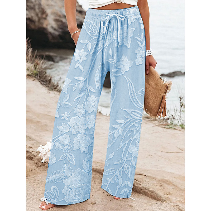 Women's Wide Leg Chinos Baggy Pants Vacation Fashion Hawaiian Full Length High Waist Floral Graphic Printing Soft Breathable Micro-elastic Casual Daily Casual Daily Pink Blue Purple Beige Summer