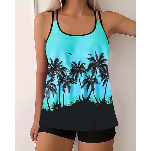 Per donna Costumi da bagno Due pezzi Shorts Costume da bagno Senza schiena Geometrico Vacanza Abbigliamento da Spiaggia Grafico Foglie Scollo a Cucchiaio Senza Maniche Costumi da bagno