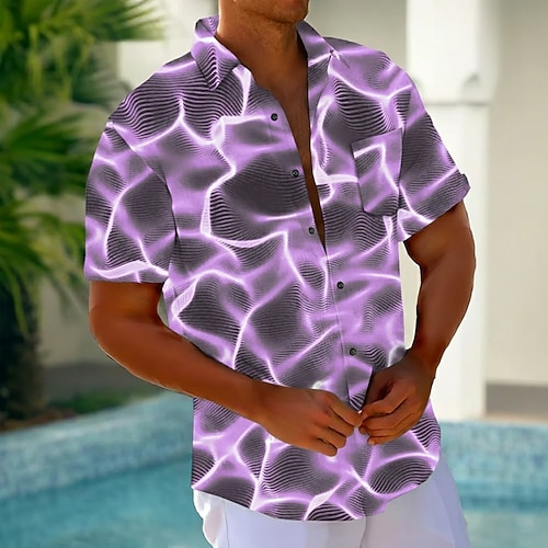 Per uomo Fulmini Astratto Bagliore al neon Camicia Camicia Estiva Camicia con Bottoni Manica Corta Moda Casual All'aperto Vacanza Abbigliamento Quotidiano Estate Primavera Collo ripiegato Stampa 3D