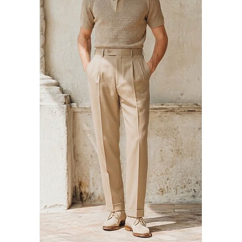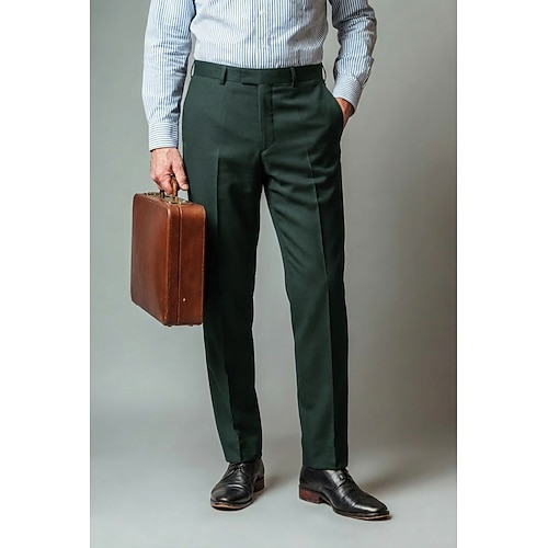 Uomo Cotone Lino Pantaloni Eleganti Pantaloni casual Affari Ufficio Formale Classico Casual Quotidiano Esercito verde Nero Blu marino scuro Tinta unica Vestibilità su misura Lungo Inelastico