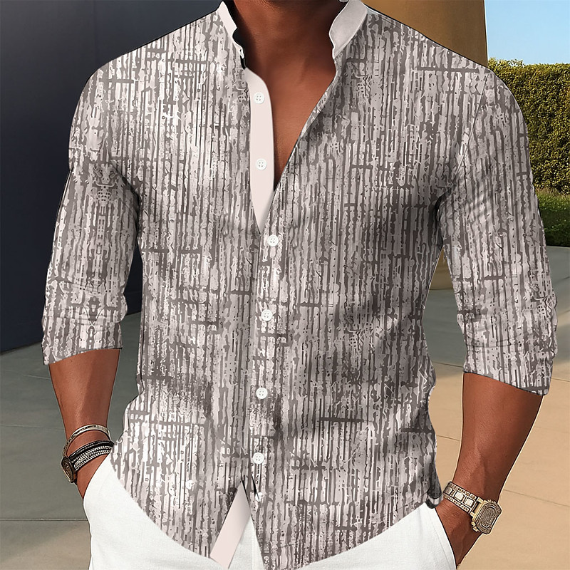Men's Stripes Geometric Pattern Shirt Stand Collar Shirt Long Sleeve Vintage Retro Dailywear Holiday Spring Fall Mandarin Collar Band Collar 3D Print Button Up Shirts Blue Brown Green Gray