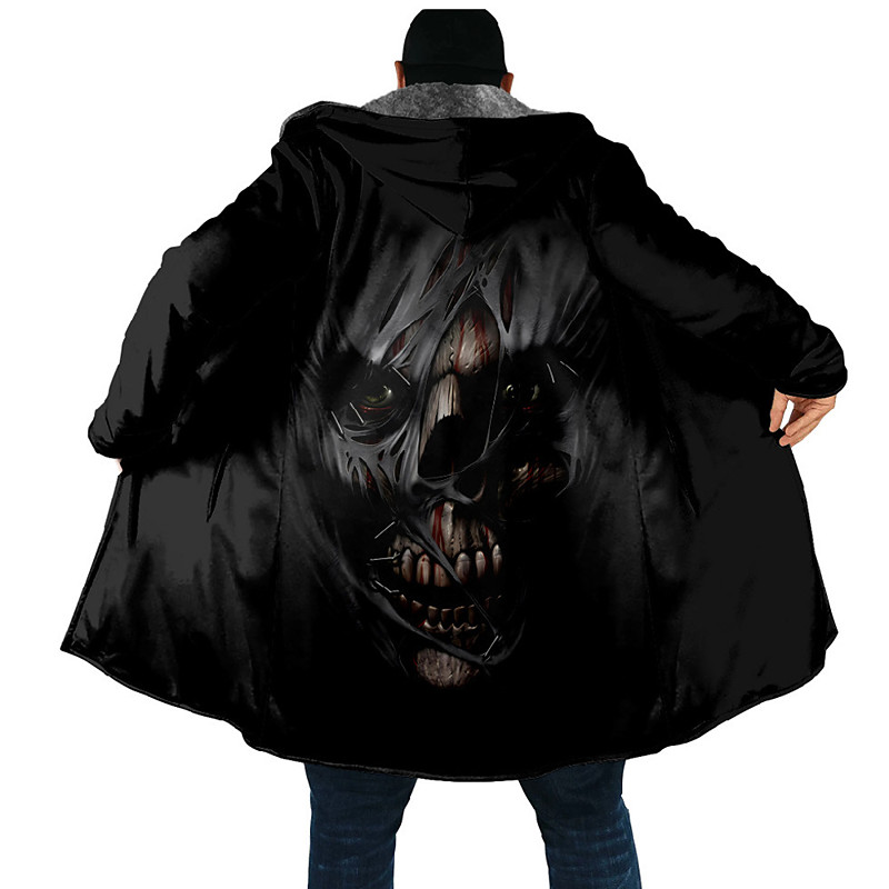 Men's Skulls Winter Coat Fleece Jacket Coat Thermal Warm Comfortable Casual Daily Wear Zipper Pocket 3D Print Fall Winter Hooded Long Sleeve Black Red Dark Gray
