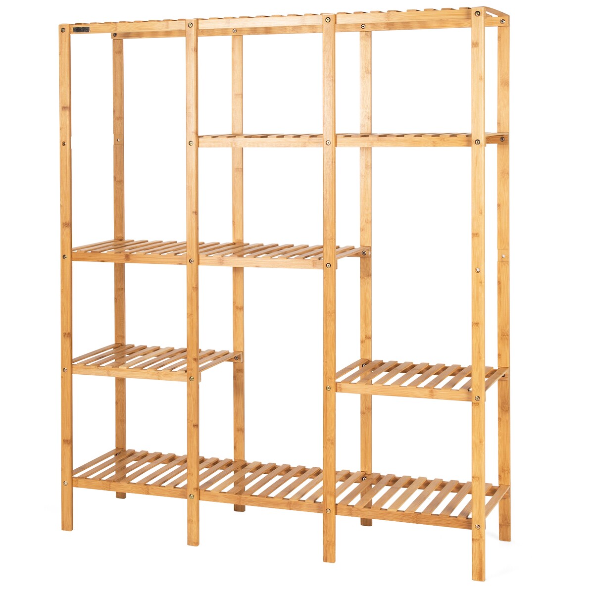 COSTWAY Bambus-Pflanzenregal, Standregal mit 5 Ebenen, Blumen-Treppen-Pflanzenständer mit Hängerahmen