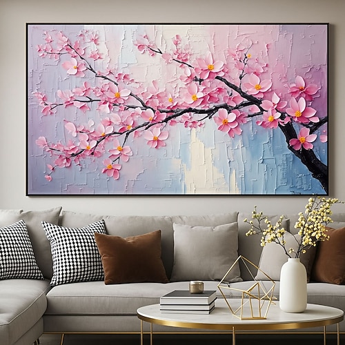dipinto fatto a mano di fiori di ciliegio rosa in fiore, dipinto a mano 3d, paesaggio floreale, arte primaverile, texture floreale, arte murale, dipinto astratto di cime di alberi, regalo