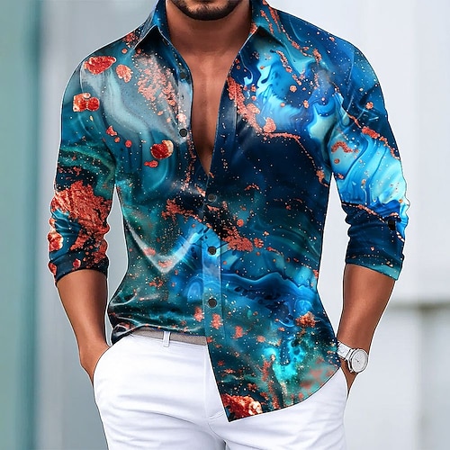 Per uomo Marmo Arte astratta Color-blocking Camicia Camicia in raso Camicia elegante Manica Lunga Moda Casual Vacanza Abbigliamento Quotidiano Estate Primavera Autunno Collo ripiegato Stampa 3D