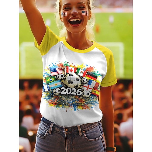 Maglietta da Donna World Soccer Match 2026 Stampa Grafica Lettera Elegante Classica Casual Maniche Corte Collo Tondo Regular Top Giornalieri Blu Giallo Rosso Verde Estate Primavera