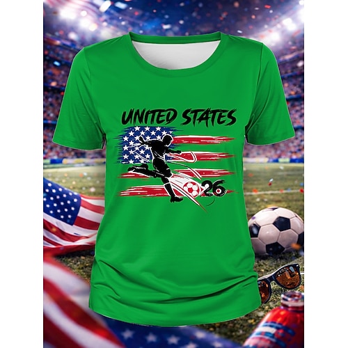 Maglietta da Donna World Soccer Match 2026 Stampa Grafica Lettera Elegante Classica Casual Maniche Corte Collo Tondo Regular Top Giornalieri Blu Rosso Verde Estate Primavera