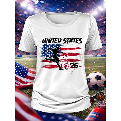 Maglietta da Donna World Soccer Match 2026 Stampa Grafica Lettera Elegante Classica Casual Maniche Corte Collo Tondo Regular Top Giornalieri Blu Nero Bianco Rosso Estate Primavera